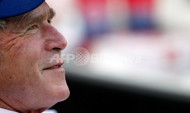 【4月2日 AFP】米国のジョージ・W・ブッシュ(George W. Bush)前大統領が1日、米テキサス(Texas)州アーリントン(Arlington)にある米大リーグ(MLB)のテキサス・レンジャーズ(Texas Rangers)の本拠地、レンジャーズ・ボールパーク・イン・アーリントン(Rangers Ballpark in Arlington)で、レンジャーズの開幕戦を観戦した。(c)AFP/Getty Images