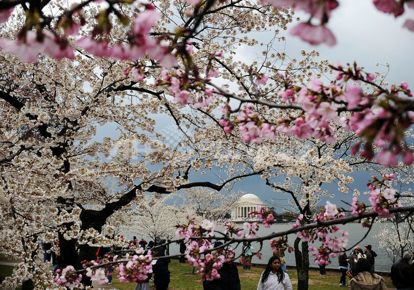 花曇りのワシントンD.C.、タイダル・ベイスンの桜