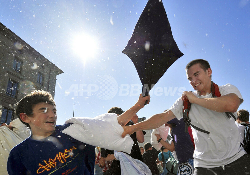 ニュース ライフ こぼれ話 ピローファイター集結!世界枕投げ大会の日 2011年4月3日 18:34 発信地:その他 [ 例外 その他 ] このニュースをシェア ‹ › ❮ 4/7 ❯ 「世界枕投げ大会の日」の2日、世界130か国で枕投げ(ピローファイト)大会が開催された。写真はスイス・チューリヒ(Zurich)でのイベントの様子(2011年4月2日撮影)。(c)AFP/FABRICE COFFRINI 画像作成中 ! 【4月3日 AFP】「世界枕投げ大会の日」の2日、世界130か国で枕投げ(ピローファイト)大会が開催された。(c)AFP ライフ 一覧へ> メディア・報道関係・法人の方向け 写真・動画 購入のお問合せ>