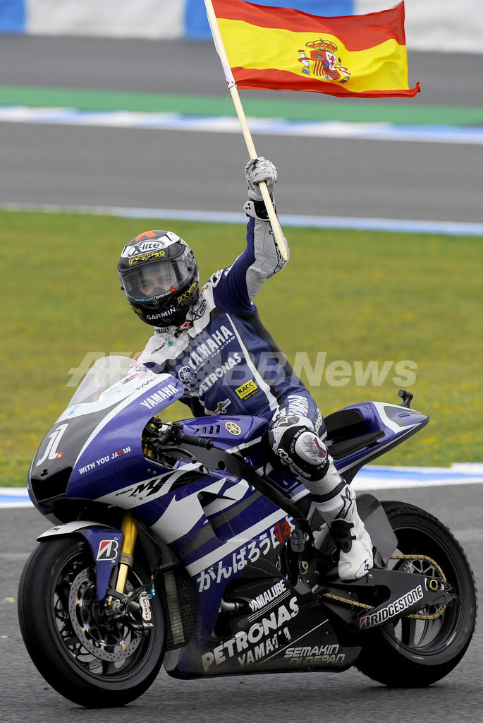 【4月4日 AFP】世界ロードレース選手権(WGP 2011)第2戦スペインGP、MotoGP決勝。ヤマハ・ファクトリー(Yamaha Factory)のホルヘ・ロレンゾJorge Lorenzo、スペイン)が、50分49秒046で優勝を飾った。