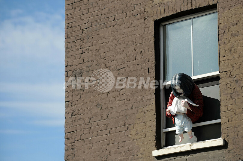 【4月7日 AFP】窓から身を乗り出して赤ん坊の息子をぶら下げている故マイケル・ジャクソン(Michael Jackson)さんの等身大の人形が、ロンドン( London)東部の音楽スタジオに登場し、ファンの怒りを買っている。