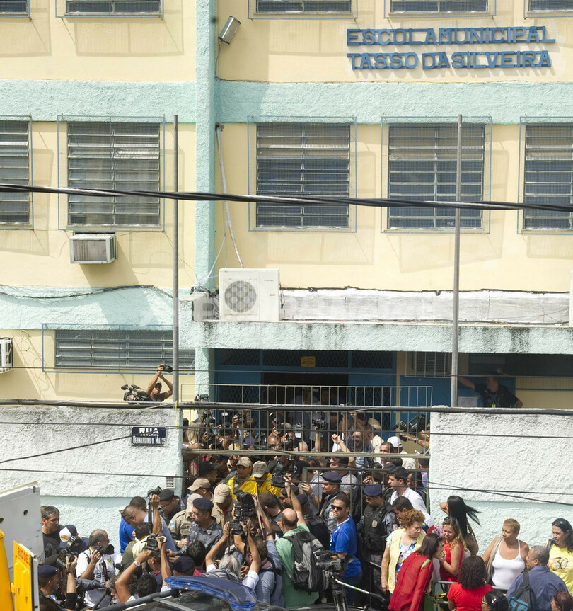【4月8日 AFP】(一部更新、写真追加)ブラジル・リオデジャネイロ(Rio de Janeiro)のレアレンゴ(Realengo)区にある9~15歳が通う公立学校で7日朝、男(24)が拳銃を乱射し、生徒12人が死亡、12人が負傷した。男は駆けつけた警官に足を撃たれた後、銃を自分の頭に向け、自殺した。