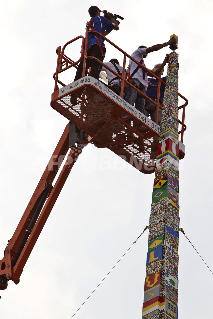 ニュース ライフ こぼれ話 ブラジルに世界一高いレゴタワー、元サッカー代表カフーも一役 2011年4月11日 11:37 発信地:サンパウロ/ブラジル [ 中南米 ブラジル ] このニュースをシェア ‹ › ❮ 2/7 ❯ ブラジル・サンパウロ(Sao Paulo)で9日、世界一高いレゴブロックのタワーが完成した。高さは31メートル19センチで、チリ・サンティアゴ(Santiago)で樹立された世界記録を25センチ上回った。最後の1ブロックは、サッカー元ブラジル代表選手のカフー(Cafu)氏の手で積まれた。写真は、タワーの先端に最後のブロックを取り付けるカフー氏(2011年4月9日撮影)。(c)AFP/Nelson ALMEIDA 画像作成中 ! 【4月11日 AFP】ブラジル・サンパウロ(Sao Paulo)で9日、世界一高いレゴブロックのタワーが完成した。高さは31メートル19センチで、チリ・サンティアゴ(Santiago)で樹立された世界記録を25センチ上回った。最後の1ブロックは、サッカー元ブラジル代表選手のカフー(Cafu)氏の手で積まれた。(c)AFP ライフ 一覧へ> メディア・報道関係・法人の方向け 写真・動画 購入のお問合せ>