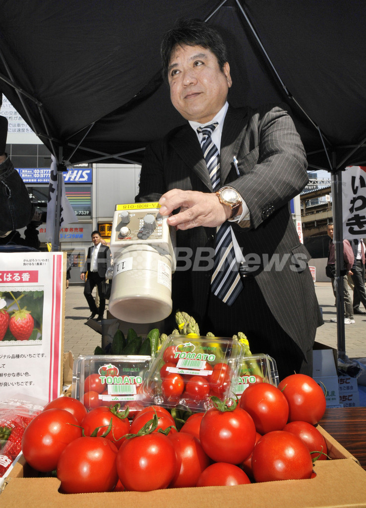 ニュース 政治・経済 枝野官房長官、いわき市産の野菜をガブリ 都内即売会 2011年4月12日 17:18 発信地:東京 [ アジア・オセアニア 東京 ] このニュースをシェア ‹ › ❮ 8/8 ❯ 福島第1原発事故で放射性物質が拡散したことの懸念から売上が落ちた福島県の農家を支援するため、枝野幸男(Yukio Edano)官房長官は12日、都内で開かれた即売会で、福島県いわき市で生産されたトマトやイチゴなどを食べ、安全性をアピールした。写真は、即売会の開始前に野菜の放射線を調べる男性(2011年4月12日撮影)。(c)AFP/Yoshikazu TSUNO 画像作成中 ! 【4月12日 AFP】福島第1原発事故で放射性物質が拡散したことの懸念から売上が落ちた福島県の農家を支援するため、枝野幸男(Yukio Edano)官房長官は12日、都内で開かれた即売会で、福島県いわき市で生産されたトマトやイチゴなどを食べ、安全性をアピールした。(c)AFP 政治・経済 一覧へ> メディア・報道関係・法人の方向け 写真・動画 購入のお問合せ>