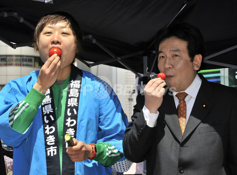 ニュース 政治・経済 枝野官房長官、いわき市産の野菜をガブリ 都内即売会 2011年4月12日 17:18 発信地:東京 [ アジア・オセアニア 東京 ] このニュースをシェア ‹ › ❮ 4/8 ❯ 都内即売会で福島県いわき市産のイチゴを食べる枝野幸男(Yukio Edano)官房長官(右)と、トマトを食べるお笑いコンビ南海キャンディーズのしずちゃんこと山崎静代(Shizuyo Yamasaki)さん(左、2011年4月12日撮影)。(c)AFP/Yoshikazu TSUNO 画像作成中 ! 【4月12日 AFP】福島第1原発事故で放射性物質が拡散したことの懸念から売上が落ちた福島県の農家を支援するため、枝野幸男(Yukio Edano)官房長官は12日、都内で開かれた即売会で、福島県いわき市で生産されたトマトやイチゴなどを食べ、安全性をアピールした。(c)AFP 政治・経済 一覧へ> メディア・報道関係・法人の方向け 写真・動画 購入のお問合せ>