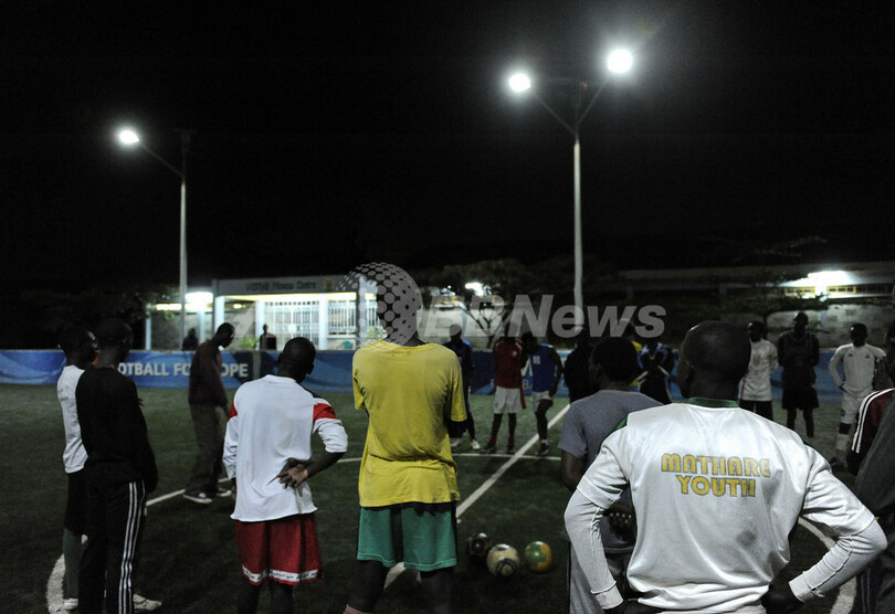 【4月12日 AFP】夜8時、ケニアの首都ナイロビ(Nairobi)で最も過酷といわれるスラムのあちこちから、アマチュアの5人制サッカーチームの若者たちが集まってきた。