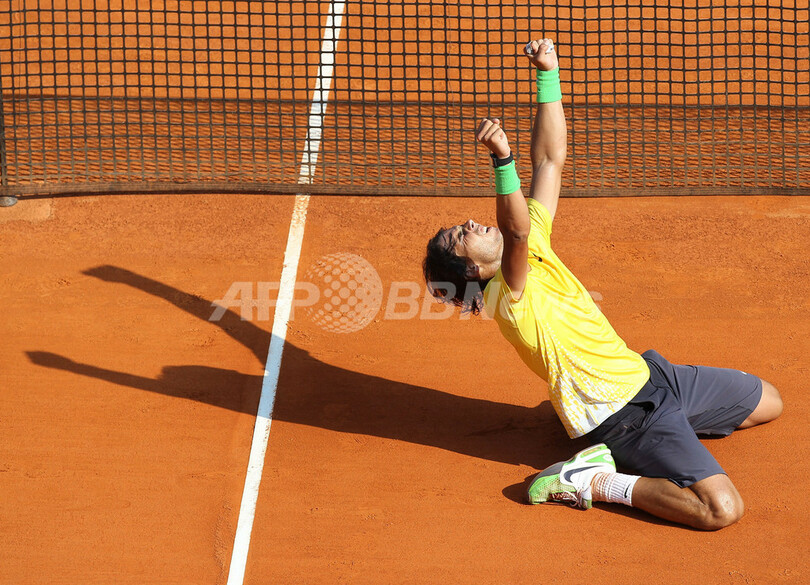 ナダルは「数年前にはここで7度優勝するなんて思いつきもしなかった。24歳でこんなことができたなんて、ラッキーな男だ。感動している。モンテカルロでまた勝てるなんて素晴らしいことだ」と試合後に振り返った。(c)AFP/Scott Williams