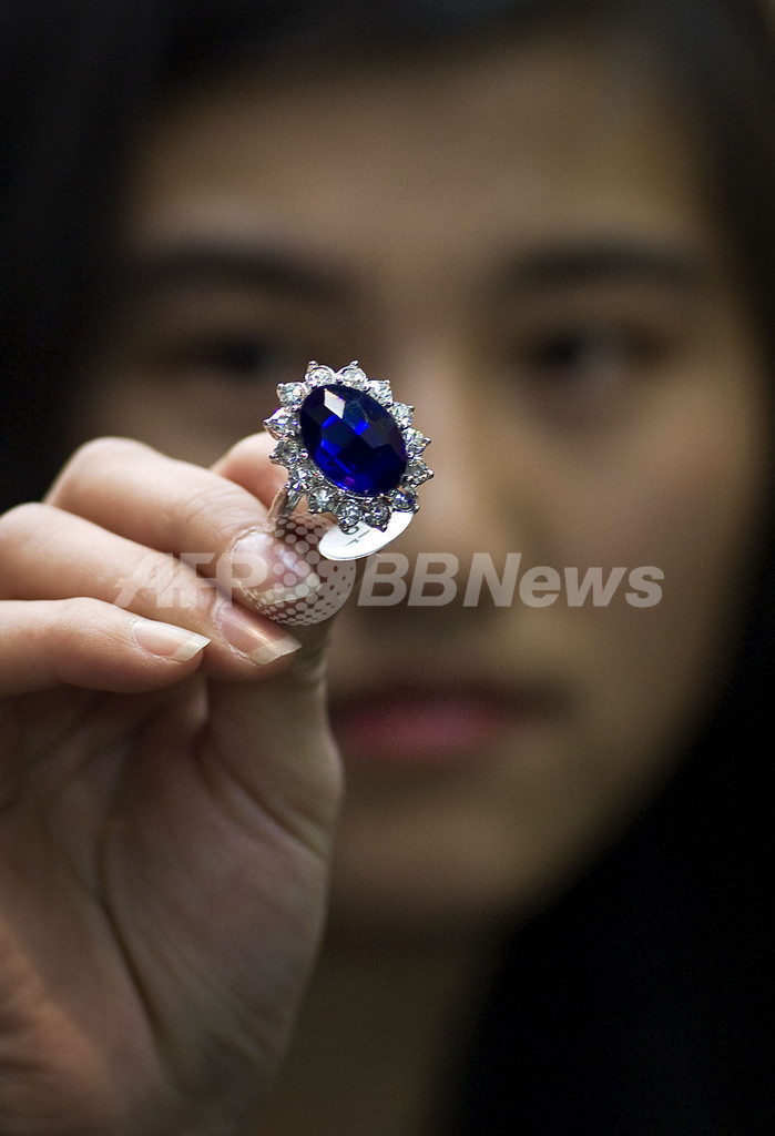 かつて故ダイアナ元妃(Princess Diana)に婚約指輪としてプレゼントされ、ウィリアム王子がミドルトンさんに婚約指輪としてプレゼントした18カラットのサファイアとダイヤモンドの指輪。チョウさんはこの婚約指輪のレプリカを10万個ほど販売した。