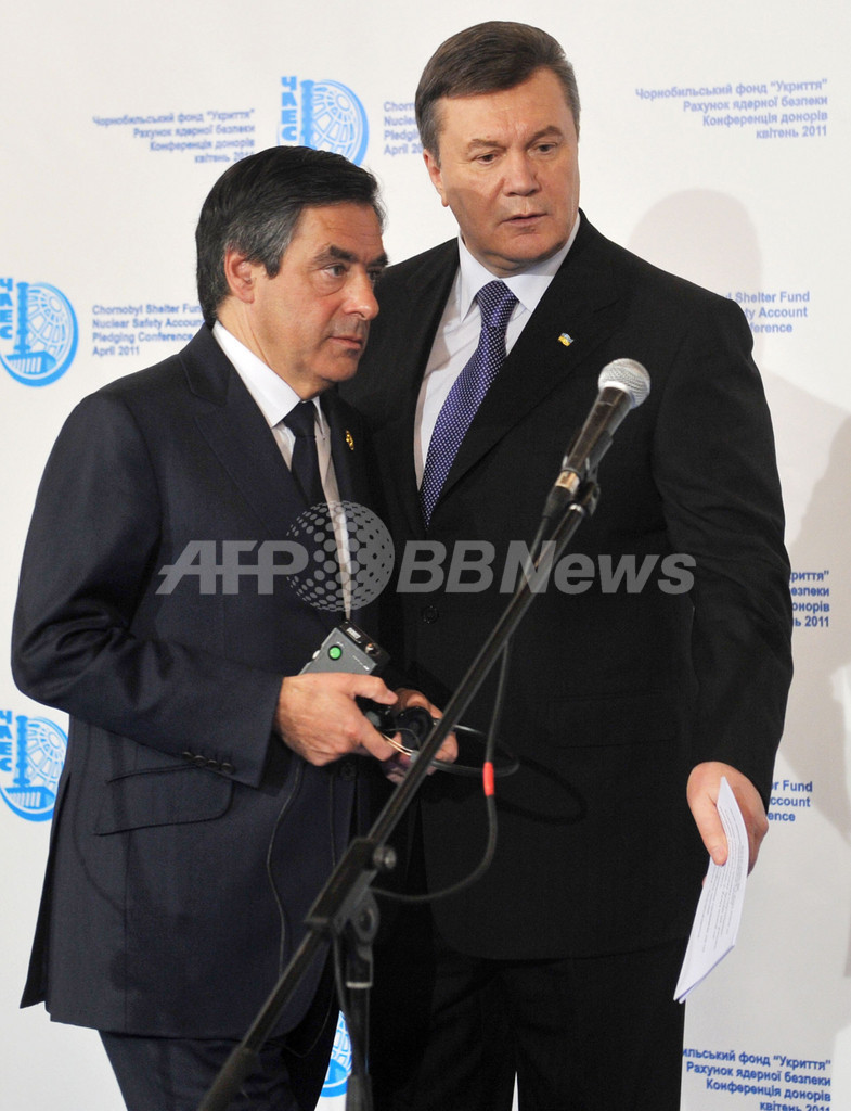 ヤヌコビッチ大統領は、チェルノブイリを「生態学的に安全な場所」へと変えるため、使用済み核燃料の貯蔵施設や、原子炉を覆う新たなシェルターの建設が必要だと訴えた。(c)AFP