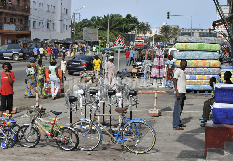 写真は、いくつかの店舗も営業を再開し、活気を取り戻しつつあるアビジャン・クマシ(Koumassi)地区の通り(2011年4月18日撮影)。(c)AFP/SIA KAMBOU