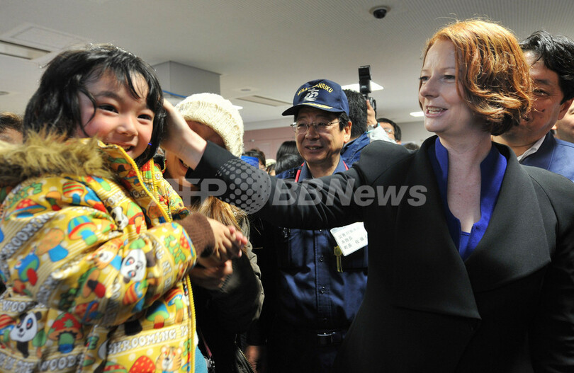 ニュース 政治・経済 ギラード豪首相、被災地の南三陸町を訪問 2011年4月23日 19:17 発信地:南三陸/宮城 [ アジア・オセアニア 宮城 ] このニュースをシェア ‹ › ❮ 19/21 ❯ 来日中のオーストラリアのジュリア・ギラード(Julia Gillard)首相は23日、東日本大震災で甚大な被害を受けた宮城県南三陸町を訪れた。ギラード首相は21日に復興支援への協力として、自然資源やレアアース(希土類)などの安定供給を約束した。写真は、南三陸町の避難所で、避難生活を送る子どもの歓迎を受けるギラード首相(2011年4月23日撮影)。(c)AFP/KAZUHIRO NOGI 画像作成中 ! 【4月23日 AFP】(写真追加)来日中のオーストラリアのジュリア・ギラード(Julia Gillard)首相は23日、東日本大震災で甚大な被害を受けた宮城県南三陸町を訪れた。ギラード首相は21日に復興支援への協力として、自然資源やレアアース(希土類)などの安定供給を約束した。(c)AFP 政治・経済 一覧へ> メディア・報道関係・法人の方向け 写真・動画 購入のお問合せ>
