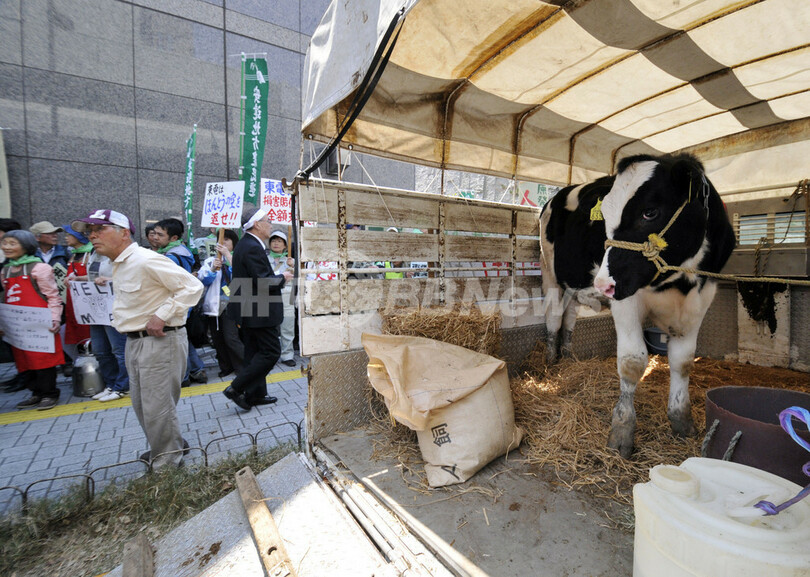 ニュース 社会 農家ら350人が東電本店前で抗議、原発事故の補償求める 2011年4月26日 19:02 発信地:東京 [ アジア・オセアニア 東京 ] このニュースをシェア ‹ › ❮ 3/12 ❯ 都内にある東京電力(TEPCO)本店前で26日、福島県を中心に近県から集まった農家、酪農家など約350人が、福島第1原発事故の補償を求める抗議行動を行った。写真は抗議行動のために東電本社前に連れてこられたウシ(2011年4月26日撮影)。(c)AFP/Yoshikazu TSUNO 画像作成中 ! 【4月26日 AFP】都内にある東京電力(TEPCO)本店前で26日、福島県を中心に近県から集まった農家、酪農家など約350人が、福島第1原発事故の補償を求める抗議行動を行った。(c)AFP 社会 一覧へ> メディア・報道関係・法人の方向け 写真・動画 購入のお問合せ>