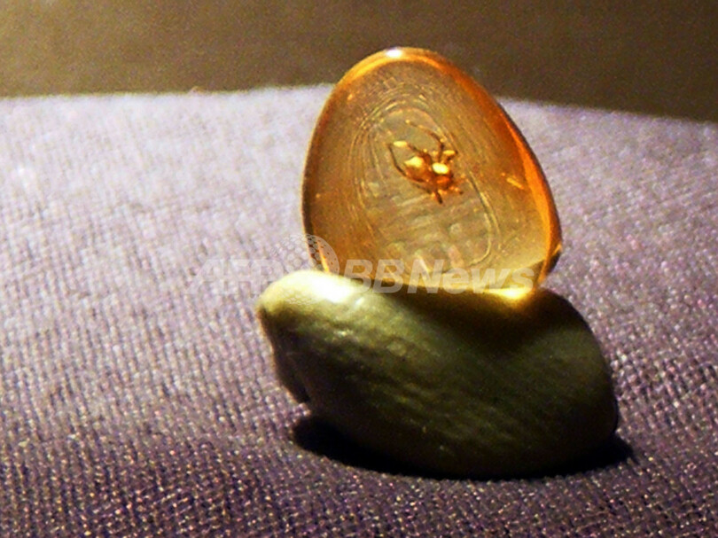 写真は、マイヤーヘニンゲン古生物博物館が公開した琥珀(2011年4月26日公開)。(c)AFP/MUSEO PALEONTOLOGICO MEYER-HONNINGER