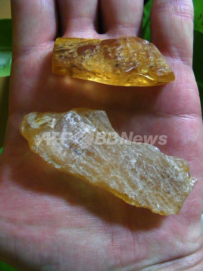 写真は、マイヤーヘニンゲン古生物博物館が公開した琥珀(2011年4月26日公開)。(c)AFP/MUSEO PALEONTOLOGICO MEYER-HONNINGER