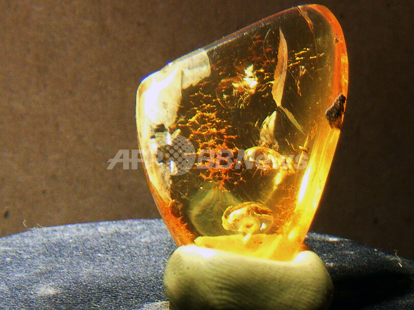 写真は、マイヤーヘニンゲン古生物博物館が公開した琥珀(2011年4月26日公開)。(c)AFP/MUSEO PALEONTOLOGICO MEYER-HONNINGER