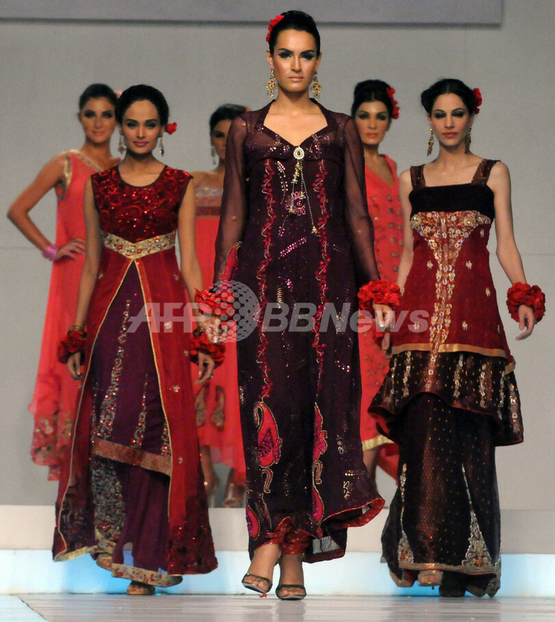 【4月28日 AFP】パキスタンのカラチ(Karachi)で22日から24日まで、パキスタンのTV番組「STYLE360」主催2011年ブライダル・クチュール・ウィーク(Bridal Couture Week)が開催された。