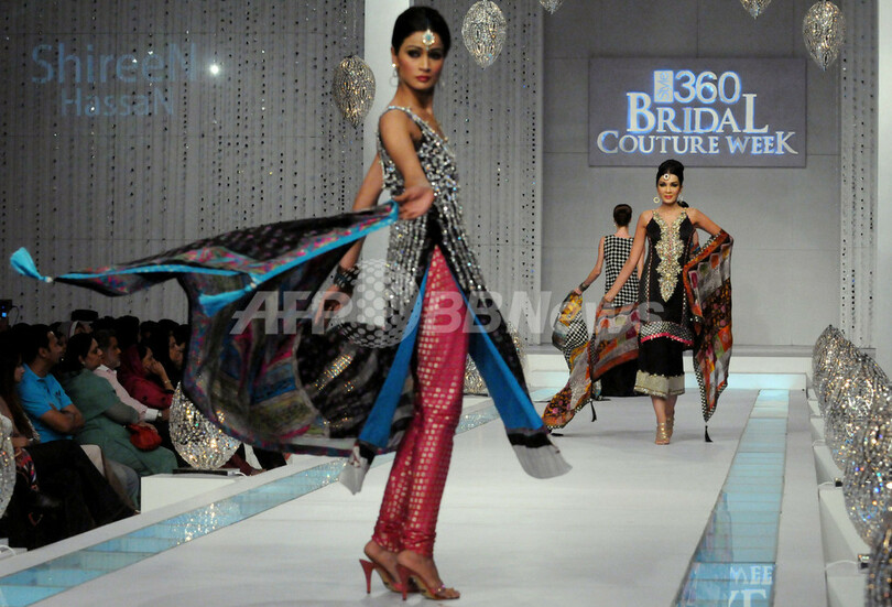【4月28日 AFP】パキスタンのカラチ(Karachi)で22日から24日まで、パキスタンのTV番組「STYLE360」主催2011年ブライダル・クチュール・ウィーク(Bridal Couture Week)が開催された。