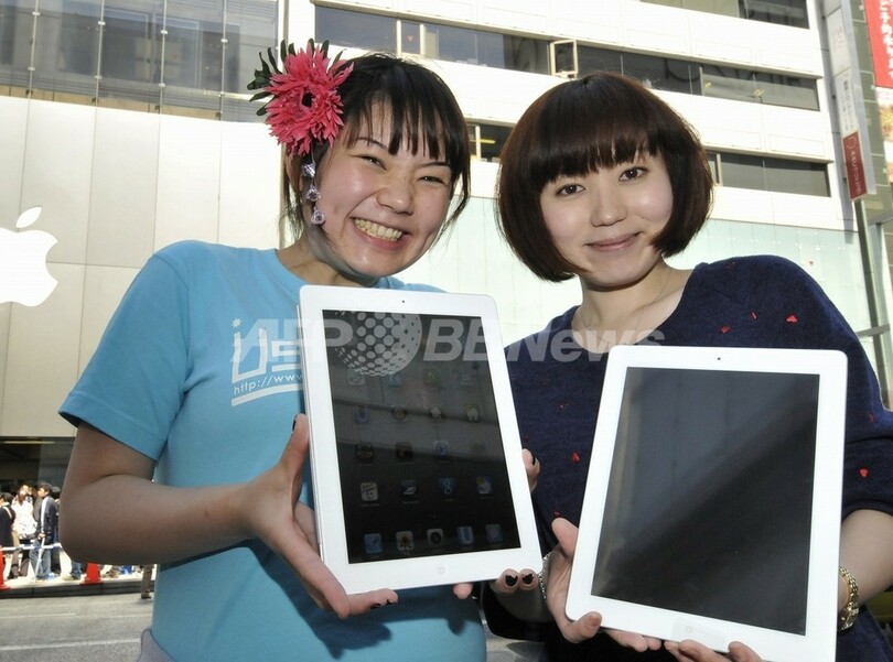 【4月28日 AFP】東日本大震災の影響で日本での販売が延期されていた米アップル(Apple)のタブレット型端末「iPad2」が28日、日本で発売された。