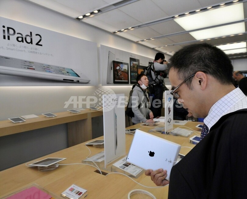【4月28日 AFP】東日本大震災の影響で日本での販売が延期されていた米アップル(Apple)のタブレット型端末「iPad2」が28日、日本で発売された。