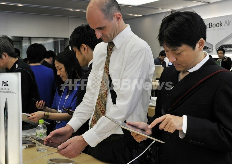 【4月28日 AFP】東日本大震災の影響で日本での販売が延期されていた米アップル(Apple)のタブレット型端末「iPad2」が28日、日本で発売された。