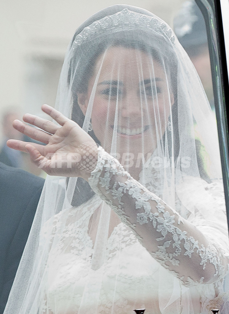 【4月29日 AFP】キャサリン妃(ケイトさん、Kate, Duchess of Cambridge)が29日に開催された結婚式で着用した「アレキサンダー・マックイーン(Alexander McQueen)」のウエディング・ドレスは、2.7メートルのトレーン(引き裾)が特徴のひとつだ。故ダイアナ元妃(Princess Diana)の結婚式の時が7.6メートルだったのに比べ、さらにこれまでの王室の「標準」と比較しても短めだ。