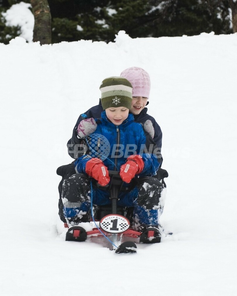写真は、レイキャビク市内の公園でそり遊びをする子どもたち(2011年5月1日撮影)。(c)AFP/JONATHAN NACKSTRAND