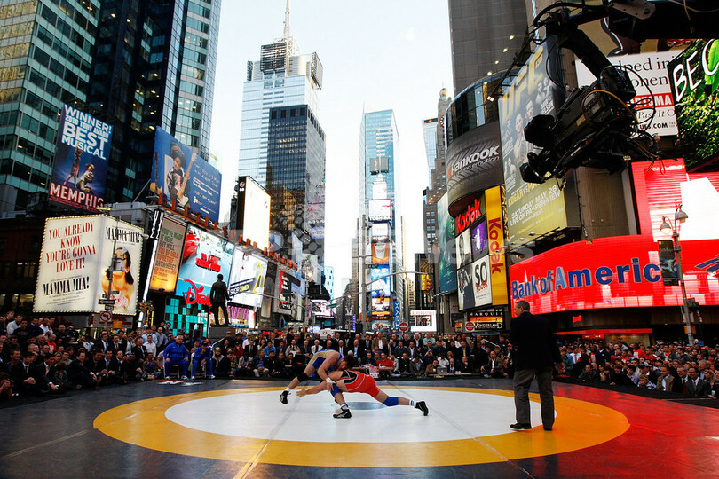 スポーツ スポーツ その他 こぼれ話 NYのど真ん中で米露対決!タイムズスクエアでレスリング 2011年5月6日 14:00 発信地:ニューヨーク/米国 [ 北米 米国 ] このニュースをシェア ‹ › ❮ 1/9 ❯ 米ニューヨーク(%%New York%%)のタイムズスクエア(%%Times Square%%)で5日、『ビート・ザ・ストリート(Beat The Street)』と銘打たれたレスリングのイベントが行われ、米国チームとロシアチームがフリースタイルレスリングで技を競った。写真は観客が見守る中試合を行う選手(2011年5月5日撮影)。(c)AFP/Getty Images/Mike Stobe 画像作成中 ! 【5月6日 AFP】米ニューヨーク(New York)のタイムズスクエア(Times Square)で5日、『ビート・ザ・ストリート(Beat The Street)』と銘打たれたレスリングのイベントが行われ、米国チームとロシアチームがフリースタイルレスリングで技を競った。(c)AFP スポーツ その他 一覧へ> メディア・報道関係・法人の方向け 写真・動画 購入のお問合せ>