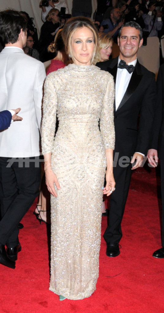 女優のサラ・ジェシカ・パーカー(Sarah Jessica Parker)とモデルのジゼル・ブンチェン(Gisele Bundchen)は、それぞれ2005年にマックイーンがデザインしたドレスをチョイス。モデルのナオミ・キャンベル(Naomi Campbell)、女優サルマ・ハエック(Salma Hayek)、ソーシャライトのダフネ・ギネス(Daphne Guinness)はバートンが手がけたドレスを着用した。