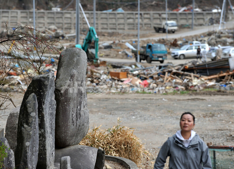 しかし、高台から静かな海を見下ろす姉吉の集落でも今回の地震で悲劇は起きた。地震の直後、車で学校へ子ども3人を迎えに行った30代の女性は、帰りに海沿いの道を使い、親子ともども巨大な波に押し流された。亡くなった女性の親族の男性は、石碑が姉吉地区を救ったことが有名にはなったが、明るい面ばかりではないとうつむく。30人の集落で4人の住民が亡くなった─―石碑の知恵を喜んで語るわけにはいかないと男性は語った。(c)AFP/Harumi Ozawa