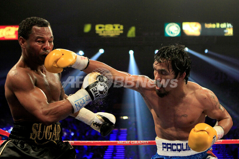 【5月8日 AFP】ボクシング、WBO世界ウェルター級タイトルマッチ12回戦は7日、ネバダ(Nevada)州ラスベガス(Las Vegas)のMGMグランドアリーナ(MGM Grand Arena)で行われ、王者マニー・パッキャオ(Manny Pacquiao、フィリピン)はシェーン・モズリー(Shane Mosley、米国)と対戦。パッキャオは判定の結果3-0(119-108、120-108、120-107)でモズリーを下して王座を防衛、連勝を14に伸ばした。(c)AFP/Greg Heakes