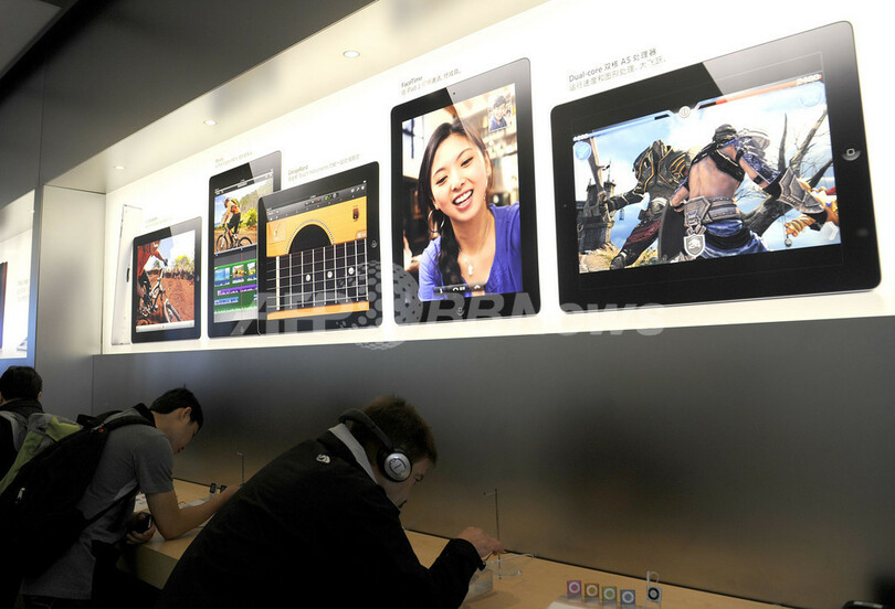 中国では6日に「iPad2」が発売になり、北京や上海(Shanghai)のアップル店舗前には、「iPad2」を買い求める人びとの数時間待ちの列ができた。