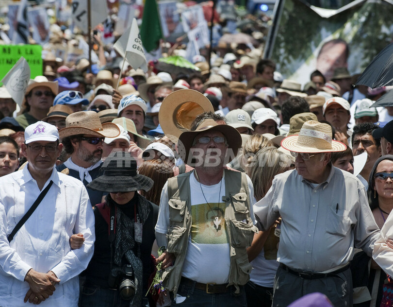 この沈黙のデモ行進は、ことし3月に南部クエルナバカ(Cuernavaca)そばで24歳の息子を殺害された地元の詩人・ジャーナリスト、ハビエル・シシリア(Javier Sicilia)氏が「平和と治安、正義のため」に呼び掛けた。デモは5日にクエルナバカを出発し、4日かけて首都までの約55キロを歩ききった。