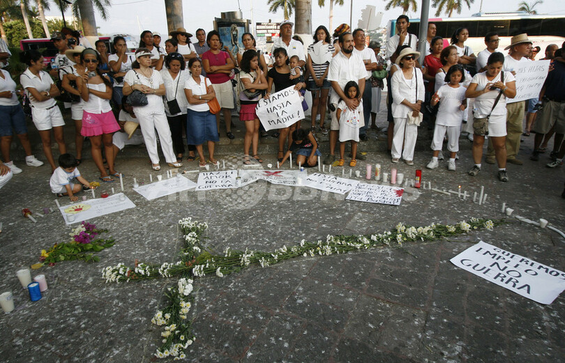 写真は、シシリア氏の沈黙のデモ行進に共感し、アカプルコ(Acapulco)でデモを行う人びと(2011年5月8日撮影)。(c)AFP/Pedro Pardo
