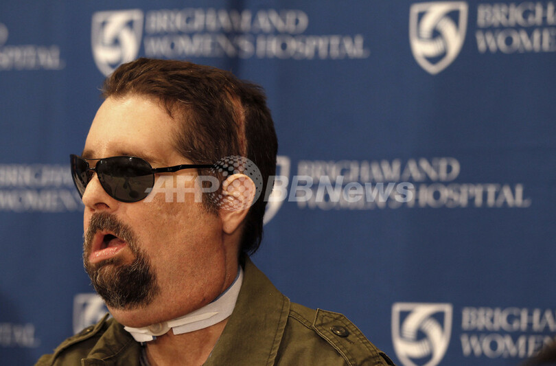 【5月10日 AFP】米ボストン(Boston)の病院で3月に同国初の全顔面移植術を受けた男性が9日、新しい顔で会見に臨んだ。