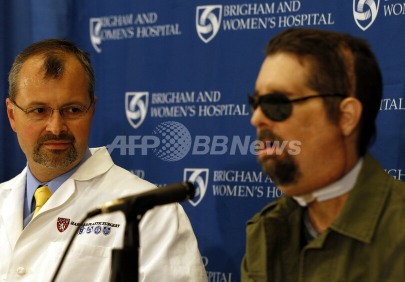 【5月10日 AFP】米ボストン(Boston)の病院で3月に同国初の全顔面移植術を受けた男性が9日、新しい顔で会見に臨んだ。