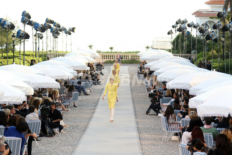 【5月10日 AFP】フランス南部アンティーブ(Antibes)で9日、カール・ラガーフェルド(Karl Lagerfeld)が手がける「シャネル(CHANEL)」が12年クルーズ・コレクションを発表した。(c)AFP