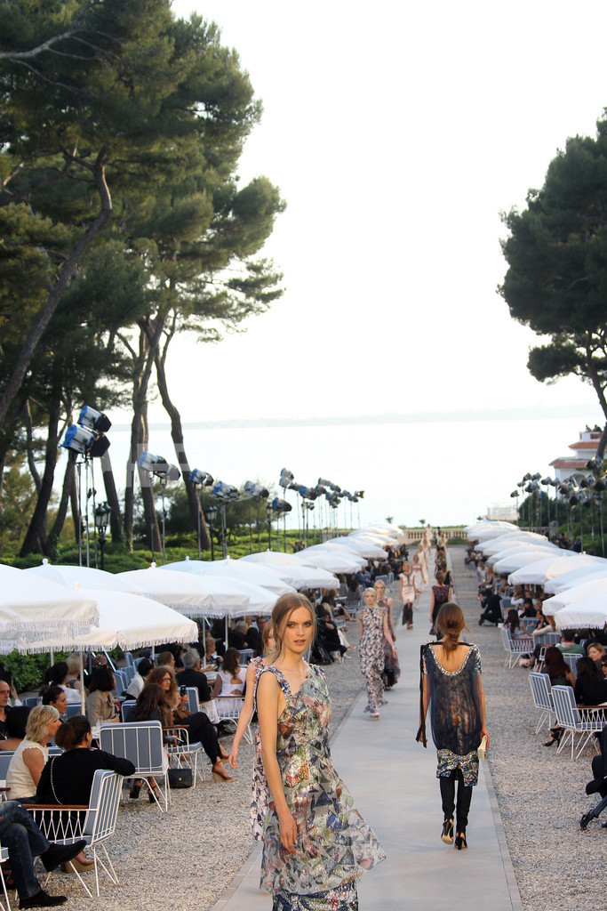 【5月10日 AFP】フランス南部アンティーブ(Antibes)で9日、カール・ラガーフェルド(Karl Lagerfeld)が手がける「シャネル(CHANEL)」が12年クルーズ・コレクションを発表した。(c)AFP