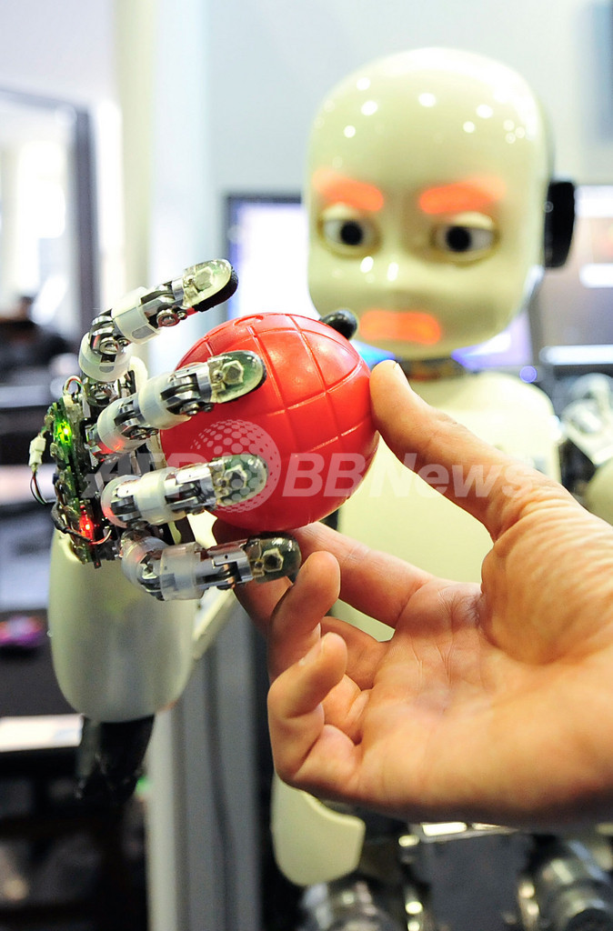 写真は、赤いボールを認識して反応するロボット(2011年5月4日撮影)。(c)AFP/ATTILA KISBENEDEK