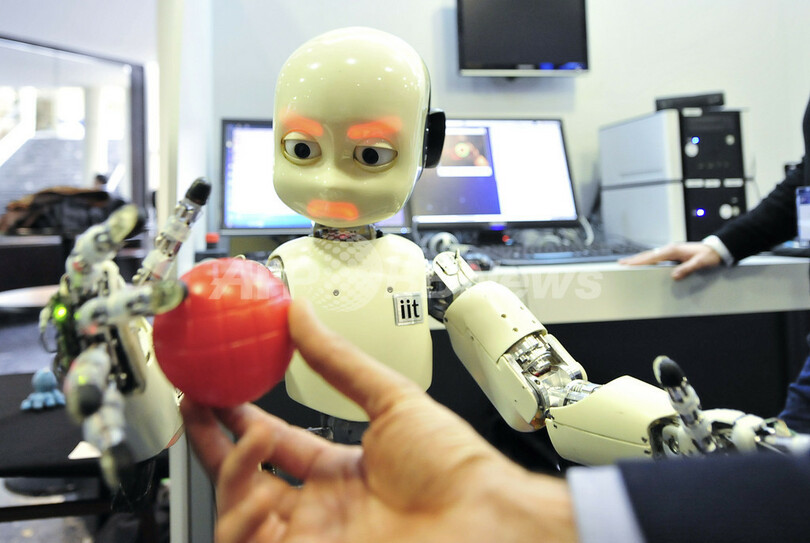 写真は、赤いボールを認識して反応するロボット(2011年5月4日撮影)。(c)AFP/ATTILA KISBENEDEK