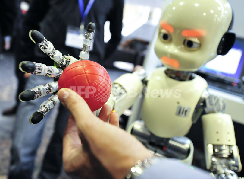 写真は、赤いボールを認識して反応するロボット(2011年5月4日撮影)。(c)AFP/ATTILA KISBENEDEK