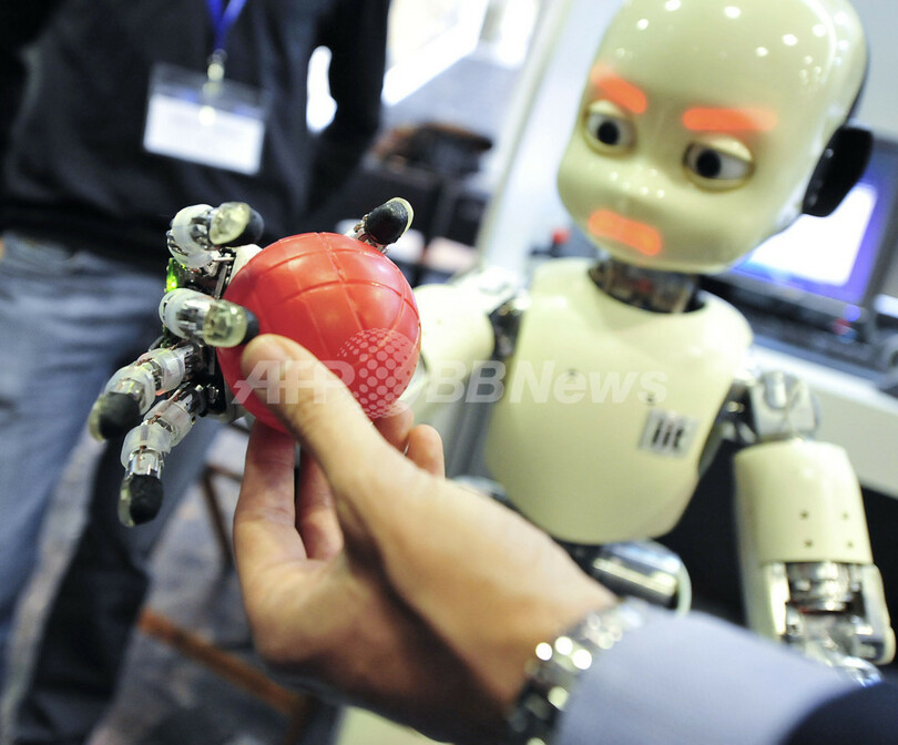 写真は、赤いボールを認識して反応するロボット(2011年5月4日撮影)。(c)AFP/ATTILA KISBENEDEK