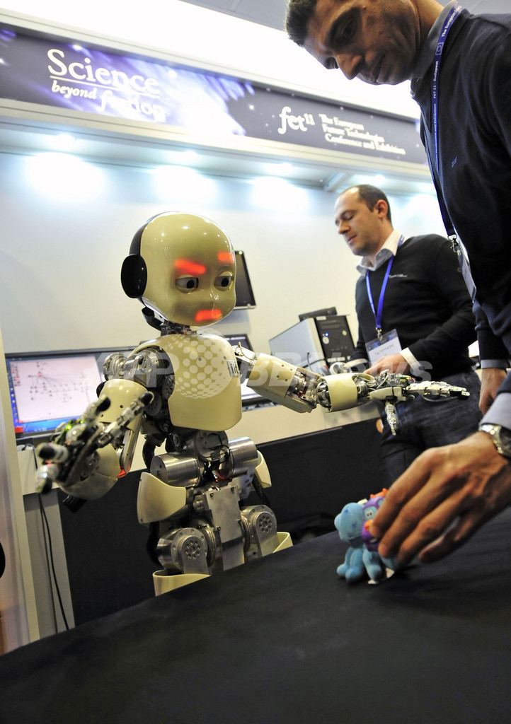 【5月11日 AFP】ハンガリーのブダペスト(Budapest)で4日、さまざまな分野の科学技術が集合する国際学術会議・見本市「fet11(European Future Technologies Conference and Exhibition)」が開かれ、「ブダペスト・コングレス・アンド・ワールドトレード・センター(Budapest Congress and World Trade Centre)」では、多種多様な最新ロボットが披露された。(c)AFP