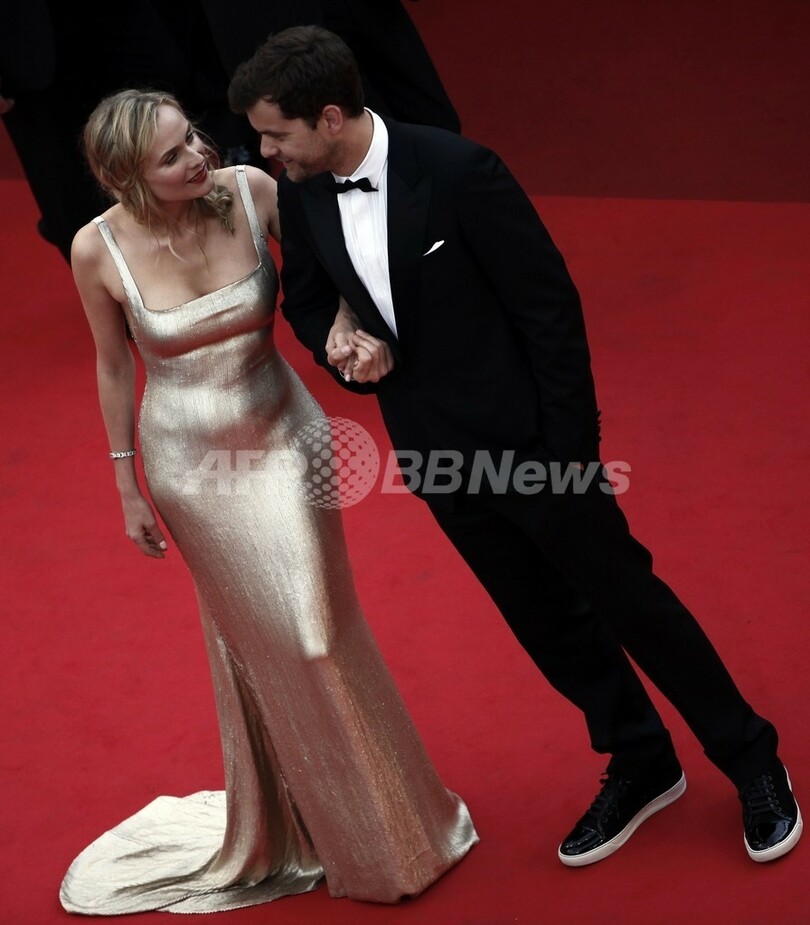 写真は、レッドカーペットに登場したドイツ人女優ダイアン・クルーガー(Diane Kruger、左)とカナダ人俳優ジョシュア・ジャクソン(Joshua Jackson、2011年5月12日撮影)。(c)AFP/GUILLAUME BAPTISTE