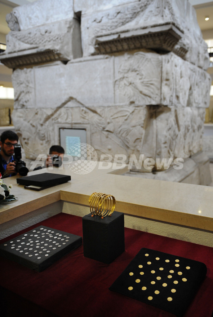 このうち、933グラムの黄金のブレスレットは、リュシマコス(Lysimachus、紀元前355-281年)の時代にカルパチア山脈(Carpathian Mountains)周辺に住んでいた古代ダキア人のもので、1998年~2001年の間に24点が盗まれた。11点が依然として行方不明だという。(c)AFP