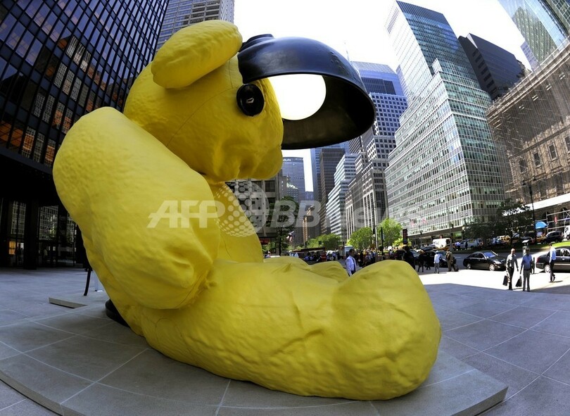 【5月13日 AFP】米ニューヨーク(New York)の目抜き通りパークアベニュー(Park Avenue)に、巨大な黄色いテディベアが出現した。