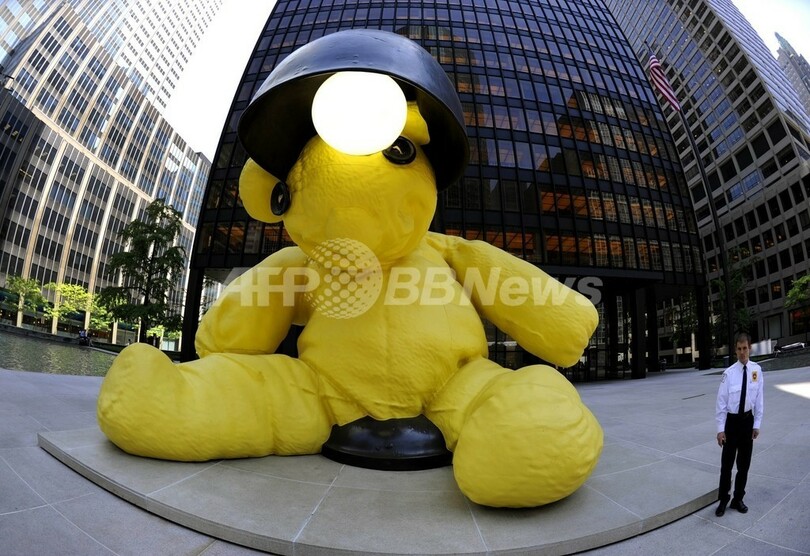 【5月13日 AFP】米ニューヨーク(New York)の目抜き通りパークアベニュー(Park Avenue)に、巨大な黄色いテディベアが出現した。