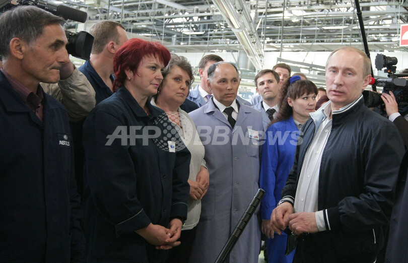 アフトワズは世界金融危機で経営危機に陥り、ロシア政府に救済された。現在、プーチン首相は「ラーダ」ブランド車を国民に浸透させるべく、自ら率先してブランドの宣伝に務めている。(c)AFP