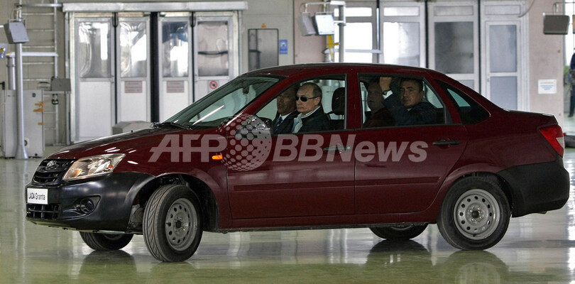 ロシア・トリヤッチ(Togliatti)にあるアフトワズ本社を11日、視察に訪れたプーチン首相は、同社の新モデル「ラーダ・グランタ(Lada Granta)」に試乗しようと、スポーツジャケットにサングラス姿でさっそうと運転席に乗り込んだ。