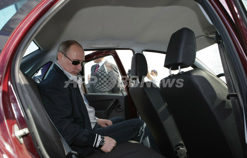ロシア・トリヤッチ(Togliatti)にあるアフトワズ本社を11日、視察に訪れたプーチン首相は、同社の新モデル「ラーダ・グランタ(Lada Granta)」に試乗しようと、スポーツジャケットにサングラス姿でさっそうと運転席に乗り込んだ。