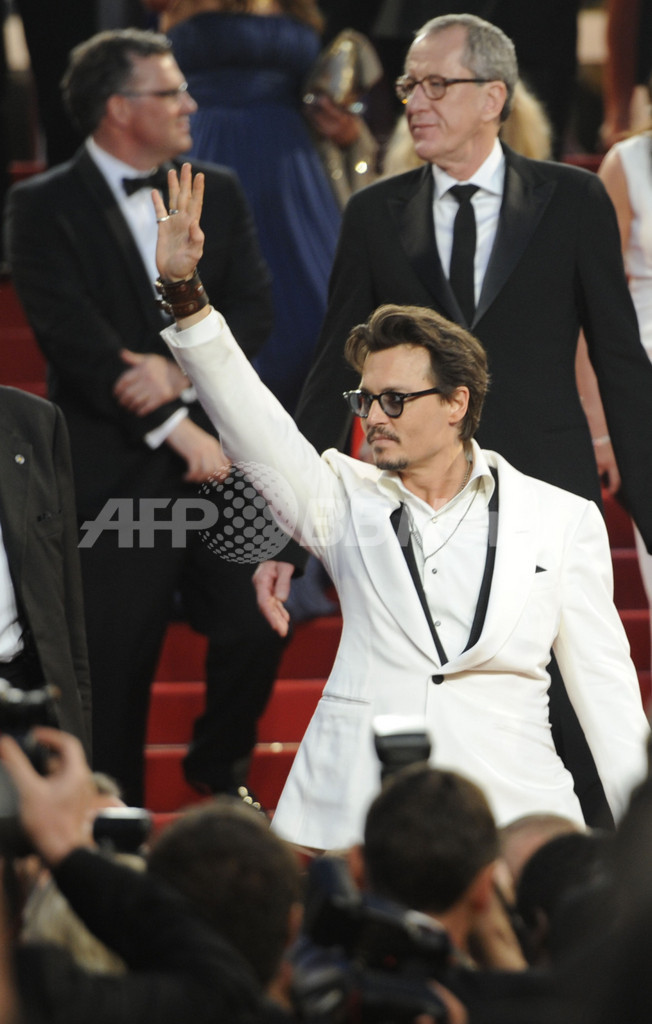 【5月15日 AFP】南仏カンヌ(Cannes)で開催中の第64回カンヌ国際映画祭(Cannes Film Festival)で、ジョニー・デップ(Johnny Depp)主演の人気シリーズ最新作『パイレーツ・オブ・カリビアン/生命(いのち)の泉(Pirates of the Caribbean: On Stranger Tides)』が非コンペティション部門で上映され、デップとペネロペ・クルス(Penelope Cruz)がレッドカーペットに登場した。(c)AFP